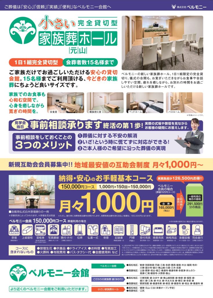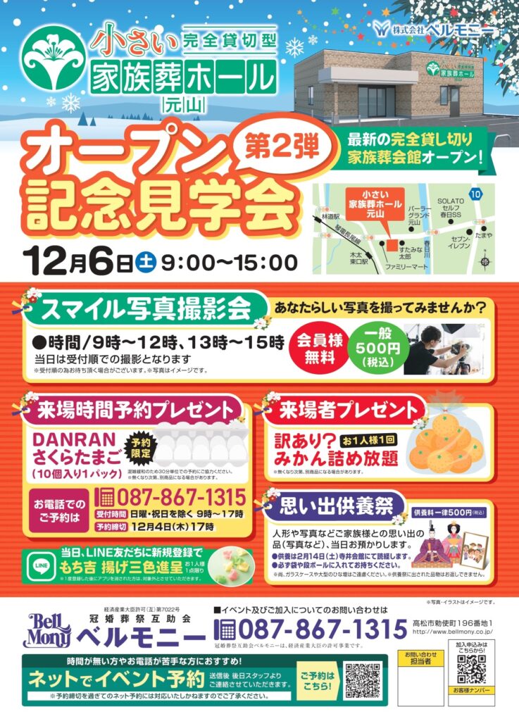 先月11月に新規オープンいたしました、ベルモニーの小さい家族葬ホール 元山!