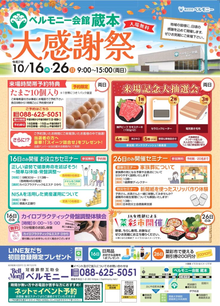 ベルモニー会館 蔵本にて地域の皆様に日頃の感謝を込めて、大感謝祭を開催いたします✨
