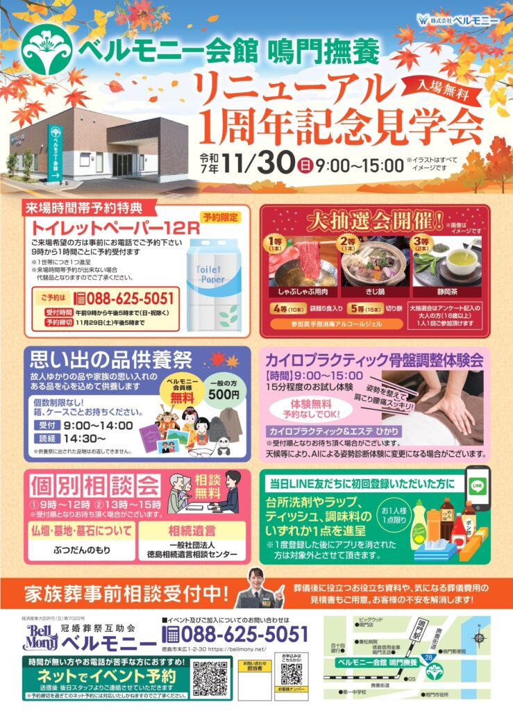 ベルモニー会館 鳴門撫養にてリニューアル1周年記念見学会を開催いたします🎉