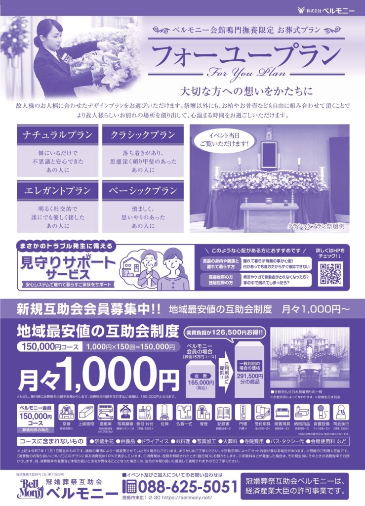 当日は、鳴門撫養会館だけの特別な「フォーユープラン」の祭壇を展示しております!